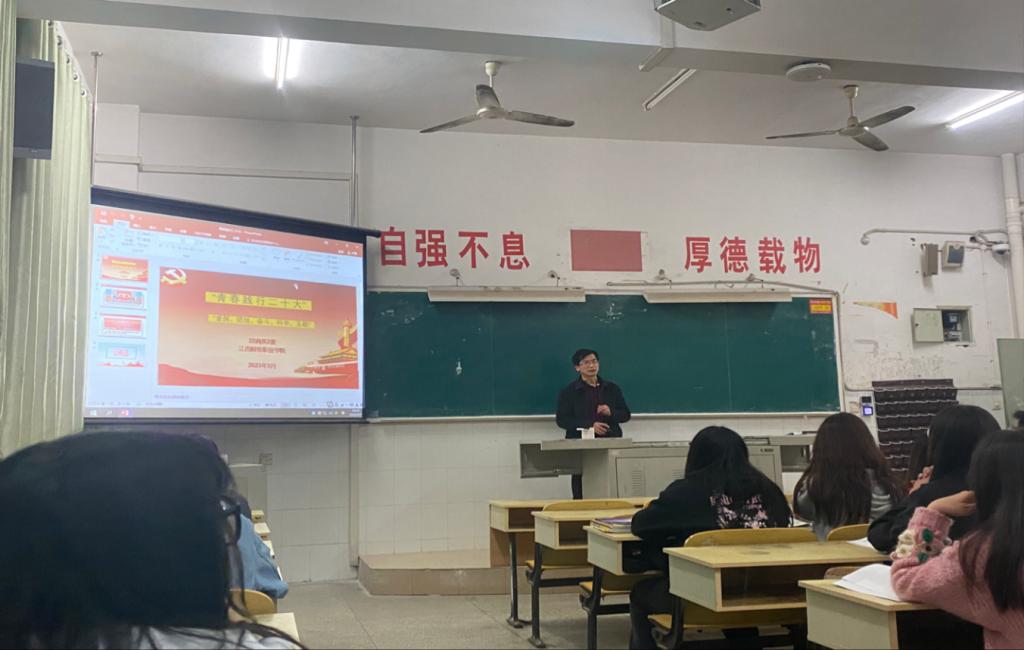為學習宣傳貫徹黨的二十大精神,教育引導廣大學生堅定不移聽黨話、跟黨走,擦拭“初心”、激揚“信心”、堅定“決心”,立志成長為新時代好青年,2023年3月7日晚上,國際教育學院黨總支書記王勝華教授參加了22級商務英語專業2班在教學樓412教室舉行的“青春踐行二十大”主題班會。此次班會由班主任吳奇虹老師主持,該班全體同學參加。