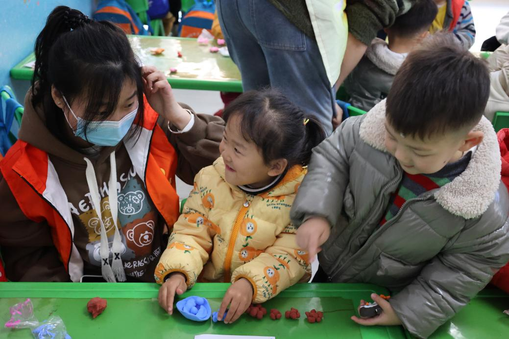 數字經濟學院志愿者給小朋友們開展了一場以節水為主題的手工黏土活動。活動中,志愿“小老師”通過展示水生生物卡片,引導小朋友們識別水生生物、保護水生生物。孩子們發揮自己的想象力,制作了許多生動可愛的小動物,把節水、保護水生生物融進作品里,制作出了各式各樣的作品。小朋友們都積極踴躍地與老師和志愿者互動,課堂上歡聲笑語。