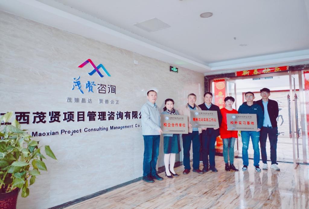 此次掛牌儀式是基于前期洽談簽訂的產(chǎn)教協(xié)同合作框架協(xié)議下開展的首步工作,在江西茂賢項(xiàng)目管理咨詢有限公司掛牌“江西財(cái)經(jīng)職業(yè)學(xué)院校企合作單位”、“江西財(cái)經(jīng)職業(yè)學(xué)院教師流動(dòng)實(shí)踐工作站”、“江西財(cái)經(jīng)職業(yè)學(xué)院校外實(shí)習(xí)基地”。
