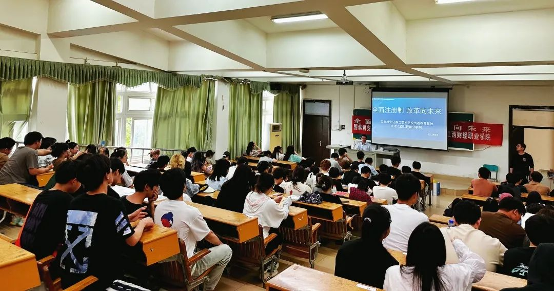 為積極響應中國證券業協會“投資者教育進百校”的倡議,提升學生金融知識水平及理財能力,2023年4月21日下午,財稅金融學院聯合國泰君安證券江西地區投資者教育基地及九江甘棠路證券營業部開展了以“防范非法證券期貨活動”“防范非法校園貸”“套路貸”和“全面注冊制 改革向未來”為主題的專項投教活動。