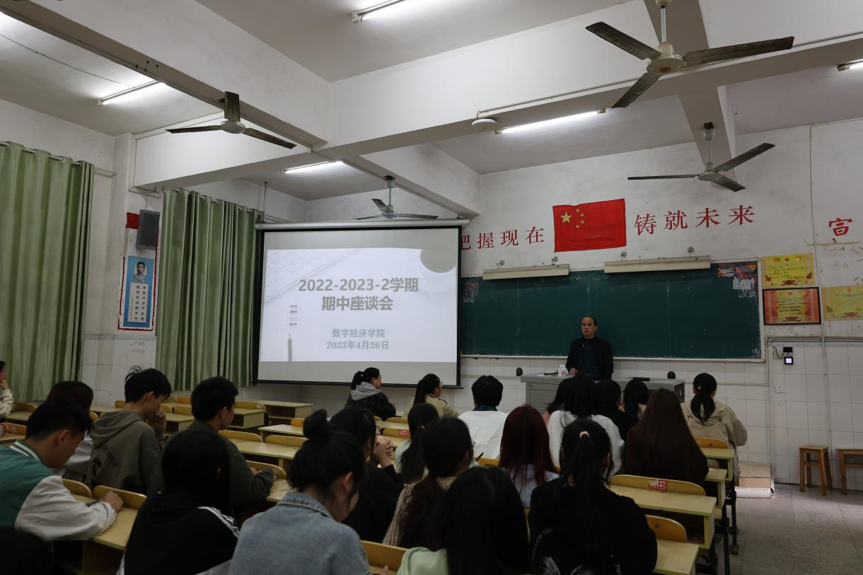 2023年4月26日下午,數字經濟學院在教學樓107教室舉辦2022-2023-2學期期中教學座談會。學院副院長李俊峰、譚宏,各教研室主任、學生管理和考務管理相關負責老師及21、22級各班學生代表參加了此次會議,會議由學院辦公室主任張文悅主持。