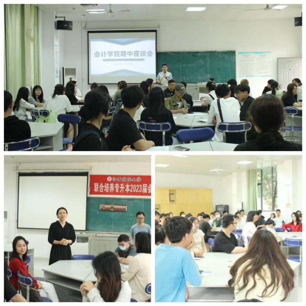 第三階段——召開教學(xué)座談會。為了更細(xì)致了解各年級學(xué)生的專業(yè)學(xué)習(xí)和生活狀況,5月4日、5日下午以教研室牽頭,分年級在東區(qū)教學(xué)樓3103會計基本技能實訓(xùn)室組織召開2022-2023學(xué)年第二學(xué)期期中教學(xué)座談會,教研室主任及課程組教師代表出席座談會,來自學(xué)院21、22級各班近120余名學(xué)生代表參加了座談會。與會學(xué)生代表主要圍繞目前專業(yè)學(xué)習(xí)、考證升學(xué)、校園活動、生活條件等幾個方面存在的問題,積極發(fā)言。21級的學(xué)生重點就專升本考試、黨團(tuán)員發(fā)展、宿舍管理、選課管理等方面提出了意見和建議;22級學(xué)生則重點對教學(xué)資源和教學(xué)方法提出了意見和建議。會后,學(xué)院也將學(xué)生所反饋的信息與相關(guān)職能部門與有關(guān)院系進(jìn)行了有效溝通,力爭及時解決問題。