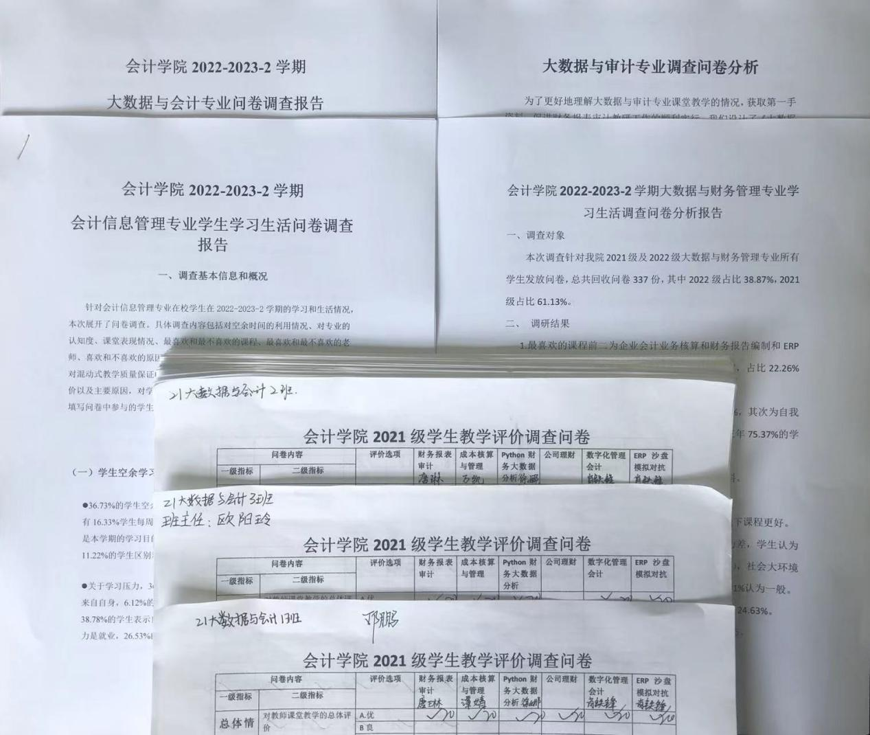 第一階段——開展問卷調(diào)查。分專業(yè)開展網(wǎng)絡(luò)問卷調(diào)查,重點了解學(xué)生的學(xué)業(yè)規(guī)劃、專業(yè)認(rèn)知、生活現(xiàn)狀、教學(xué)管理等多方面情況,并廣泛征集學(xué)生意見、建議。通過針對大數(shù)據(jù)與會計、大數(shù)據(jù)與財務(wù)管理、大數(shù)據(jù)與審計和會計信息管理四個專業(yè)分別開展網(wǎng)絡(luò)問卷調(diào)查,學(xué)院對同學(xué)們的生活、學(xué)習(xí)現(xiàn)狀有了較為全面的了解,為更好地加強和改進(jìn)我院的教育教學(xué)管理提供了第一手資料。分班級開展紙質(zhì)問卷調(diào)查,重點了解任課教師在課堂教學(xué)、學(xué)業(yè)管理等方面的具體情況。學(xué)生本著實事求是的態(tài)度,對本學(xué)期各課程任課教師的教學(xué)情況作出了中肯的評價。根據(jù)調(diào)查統(tǒng)計,我院教師在教學(xué)態(tài)度、專業(yè)水平、教學(xué)管理等方面均得到了絕大部分學(xué)生的認(rèn)可,也將針對少部分學(xué)生的意見和建議進(jìn)行及時溝通與整改,進(jìn)一步加強師資隊伍建設(shè),提升教師的綜合執(zhí)教能力。