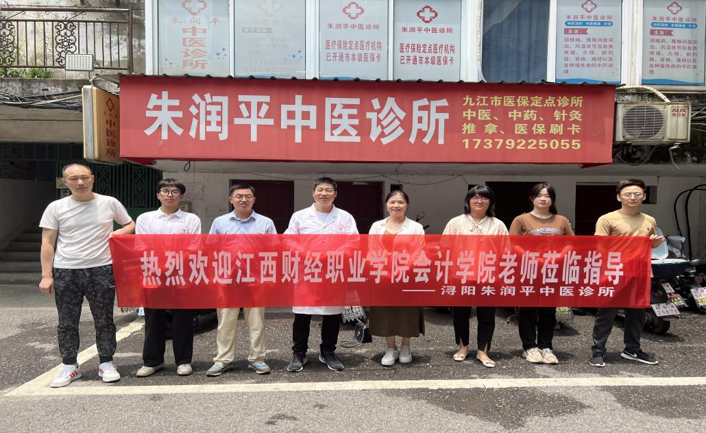 2023年5月28日,江西財經職業學院會計學院周星煜教授、余英、周國華教師帶領學生走訪潯陽朱潤平中醫診所,就加強企業財務管理、規范財務行為開展調研交流。