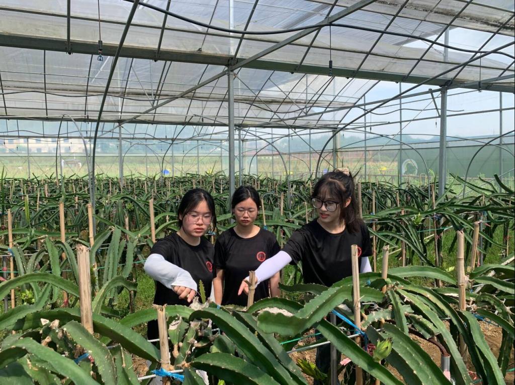 隨后,實踐隊來到了火龍果種植園區,隊員們被這片充滿生機的綠色所吸引。他們認真聆聽了劉總關于火龍果種植技術的介紹,并紛紛提出了自己的見解和想法。其中,網絡直播銷售的想法得到了大家的廣泛認可,通過直播,消費者可以更加直觀地看到火龍果從生長到成熟的全過程,這無疑將進一步拓寬火龍果的銷售渠道,提升產品的知名度和市場競爭力。在交流過程中,有隊員向劉總詢問了關于自身所學知識能否應用在相關農業領域的問題,劉總十分熱情地向隊員們介紹了產業園所運用的技術,如智能控溫調節、實時檢測系統等。這些技術都是隊員們所學的專業知識運用,鼓勵他們將所學計算機相關知識轉化為實踐成果,為農業發展貢獻自己的力量。
