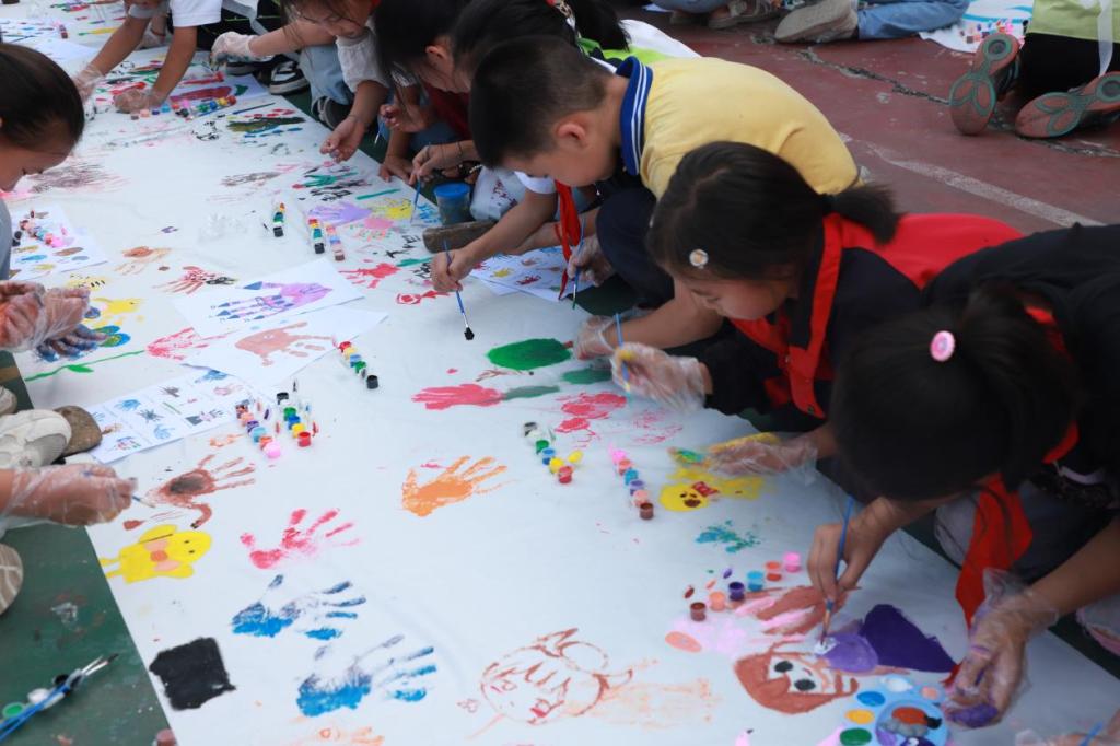 活動現(xiàn)場,“百米”長卷緩緩展開,仿佛一條連接贛黔的紐帶,等待著孩子們用色彩去填充、去講述兩地的故事。在實(shí)踐隊(duì)隊(duì)員的引導(dǎo)下,孩子們紛紛拿起畫筆,開始在畫卷上描繪自己心中的夢想與愿景。