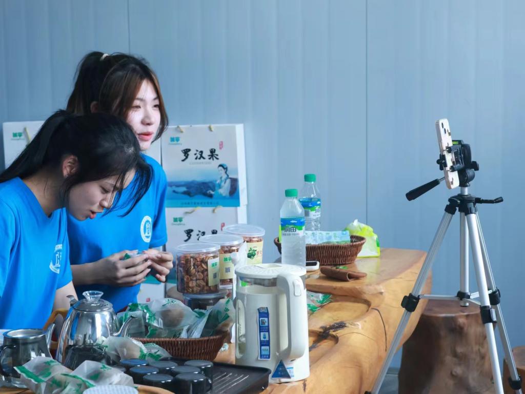 圖為:“潯夢楊洲”社會實踐隊在工廠與種植基地直播連線。