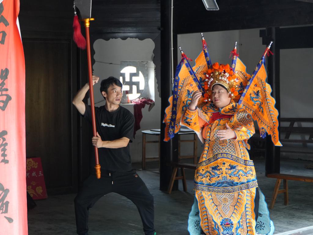 為了更全面地了解寧河戲的發(fā)展現(xiàn)狀,探索“非遺+農(nóng)旅”的鄉(xiāng)村振興新模式,實(shí)踐隊員們還深入溪口鎮(zhèn)各村各戶開展調(diào)研。“小時候,我最喜歡的就是跟著大人們?nèi)タ磧畱蛄耍菆雒嬲媸菬狒[得很。”一位老大娘回憶道。“現(xiàn)在雖然生活條件好了,但看戲的習(xí)慣一直沒變,寧河戲就是我們的精神食糧。”在村頭巷尾,實(shí)踐隊員們還聽到了許多關(guān)于村民們聽寧河戲的故事,感受到了村民們對這門古老藝術(shù)的深厚情感。