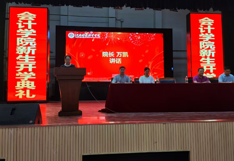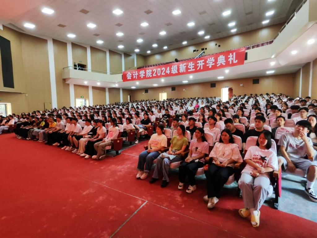 金秋九月,疊翠流金。9月10日,我院2024級(jí)新生開學(xué)典禮在英才交流中心舉行。會(huì)計(jì)學(xué)院院長萬凱、黨總支書記張家順及學(xué)院領(lǐng)導(dǎo)班子成員,優(yōu)秀班主任代表、學(xué)生代表、班主任輔導(dǎo)員以及全體2024級(jí)新生參加典禮。會(huì)計(jì)學(xué)院黨政辦公室主任曾越主持開學(xué)典禮。