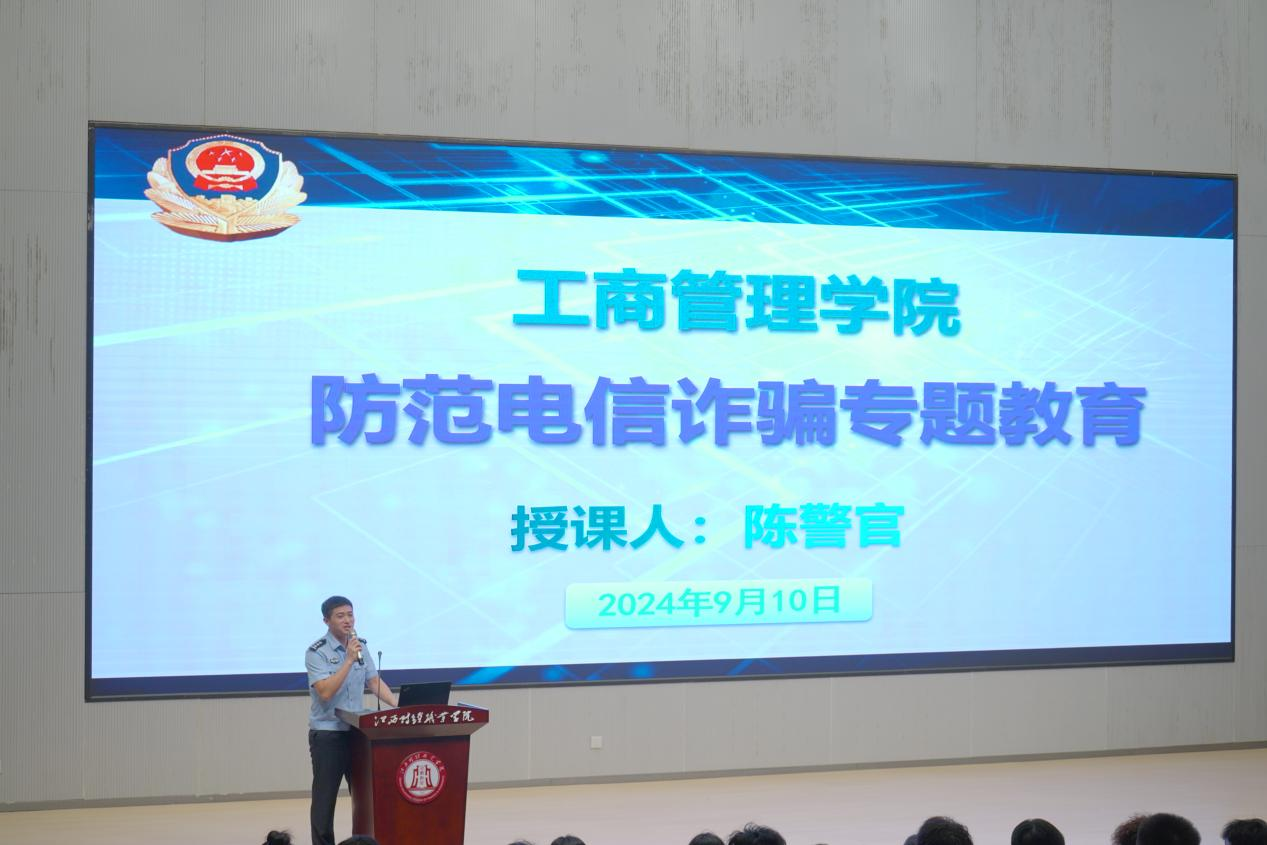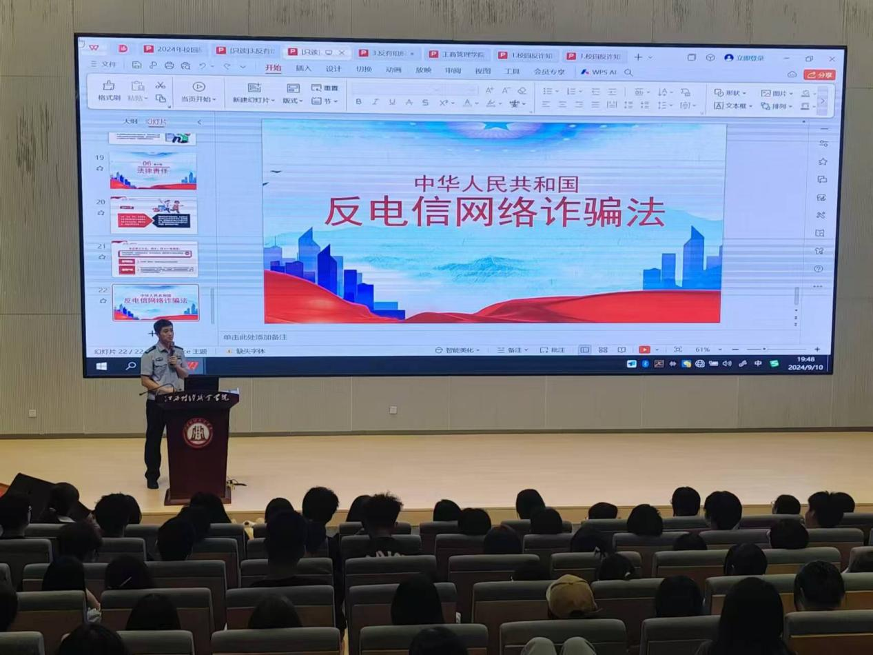 9月10日,以新生入學(xué)為契機(jī),工商管理學(xué)院邀請八里湖新區(qū)刑偵大隊(duì)反詐中隊(duì)長陳警官,在我校八里湖校區(qū)行政樓一號報告廳開展防范電信詐騙專題講座,為同學(xué)們帶去了一場精彩的“開學(xué)反詐第一課”。
