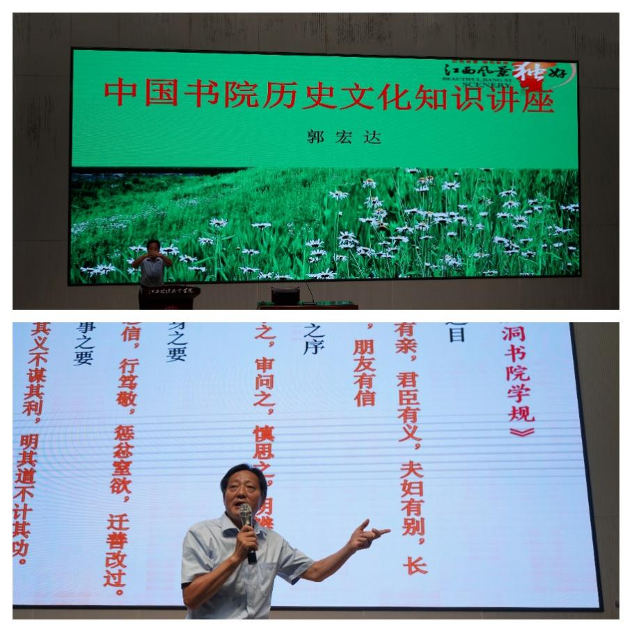 “江西書院甲天下”,遍布贛鄱大地的書院滋養了一代又一代江西人,對江西古代的文化教育事業作出了不可磨滅的貢獻。郭宏達特別講解了白鹿洞書院,并詳細的解讀朱熹訂立的學規——《白鹿洞書院揭示》,以此來闡明教育的根本。講座最后,郭宏達與全體師生一起朗誦白鹿洞書院學規,在場師生受益匪淺。通過此次培訓,全體師生不僅學習了傳統文化知識,更在心靈深處堅定了文化自信,激發了對傳承中華文化的使命感和責任感。