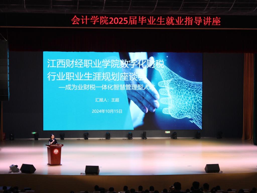 為扎實推進學生就業指導工作,為即將踏入職場的莘莘學子提供專業而全面的就業指導,2024年10月15日下午,會計學院在八里湖校區面向2025屆全體畢業生開展就業指導講座,特邀云帳房網絡科技有限公司業財稅行業專家王超總經理為講座嘉賓,會計學院黨政領導及專業教師共同參與。