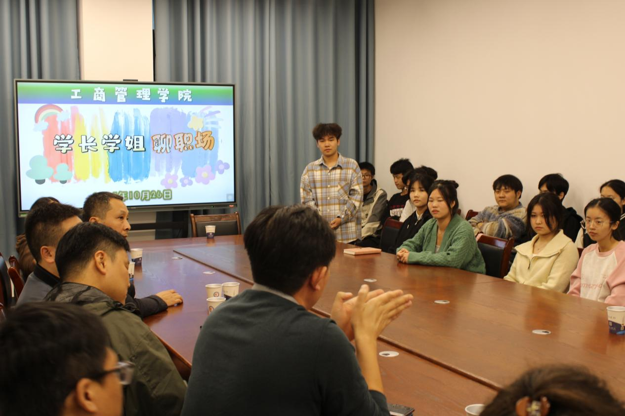10月27日下午,工商管理學院在八里湖校區一教B611會議室開展了學長學姐聊職場分享交流會。本次主講嘉賓為2001級市場營銷專業校友。相關專業學生聆聽了學長學姐們的職場故事與成長經歷。
