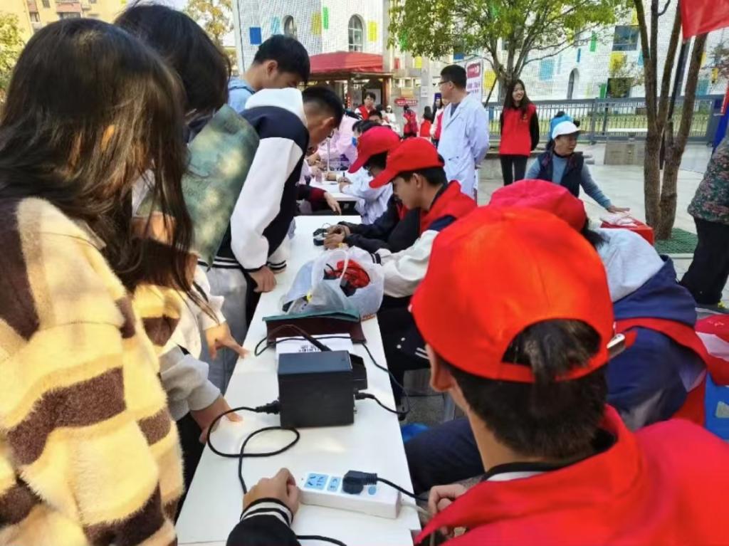 活動開始前,志愿者們迅速行動,協(xié)助社區(qū)人員將桌子和凳子搬到廣場,為后續(xù)活動的開展搭建起了基本的設施架構(gòu)。他們齊心協(xié)力,將展板和小獎品放至指定地點,確保每一個環(huán)節(jié)都不出差錯,為活動的順利進行做好準備。