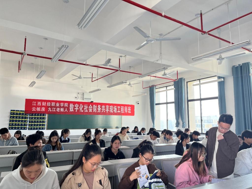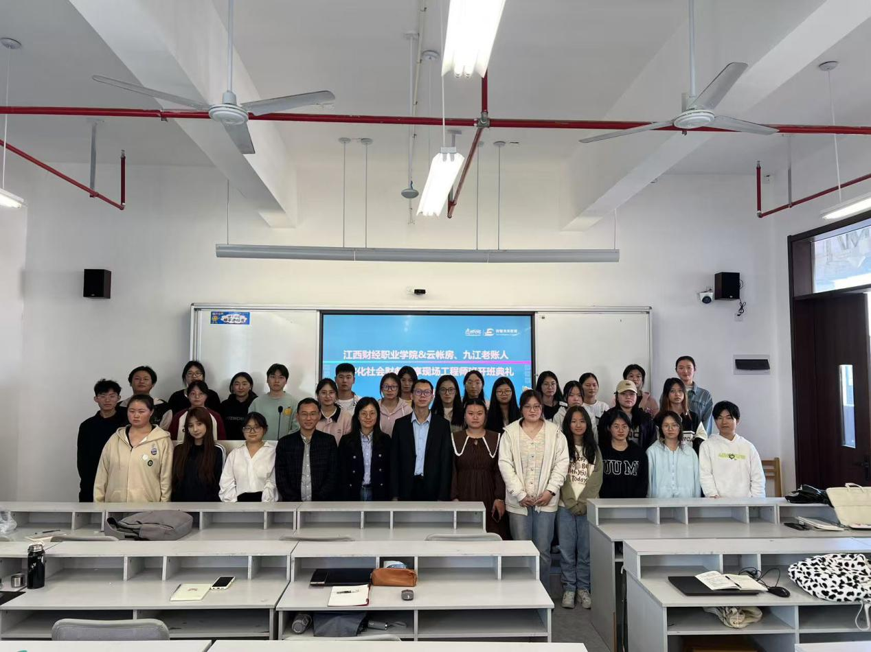 為繼續深化產教融合,通過與行業優勢企業開展校企合作,創新人才培養與就業新模式,搭建學生與企業之間的溝通橋梁,為學生打造就業創業好平臺,2024年11月12日下午,會計學院聯合云帳房網絡科技有限公司、九江老賬人財務公司舉行第二期“數字化社會服務共享中心特訓營”開班儀式。本次開班儀式于八里湖校區第一教學樓623教室舉行,九江老賬人財務咨詢有限公司董事長劉勇、會計學院副院長齊潔及參與特訓營培訓的教師與2022級會計學院學生40余人參加了本次開班儀式。