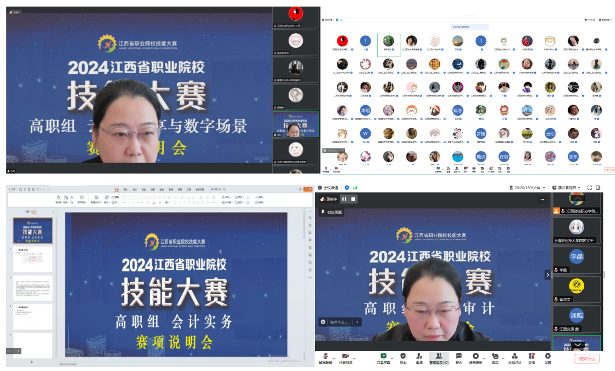 為確保2024年江西省職業(yè)院校技能大賽高職組會計實務賽項、云財務共享與數(shù)字場景應用技能賽項和智能審計賽項順利進行,江西財經(jīng)職業(yè)學院于2024年11月27日-28日分別召開賽項說明會。本次會議采用線上方式在騰訊會議室舉行,由會計學院院長萬凱教授主持,協(xié)辦校領導、賽項專家、各參賽隊領隊、指導教師、承辦校代表、技術支持單位代表準時參加會議。