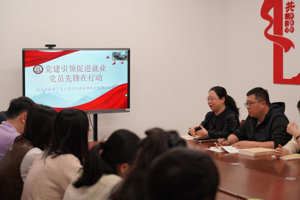 本次活動,會計學院教工黨支部創新推出“黨建+促就業”工作機制。中層黨員干部帶頭掛帥,全體黨員教師按專業分工掛點對接畢業班級,形成“一對一”幫扶責任鏈。通過黨員教師深入班級調研就業需求、輔助畢業生制定職業規劃方案、推送崗位信息等舉措,實現就業指導全覆蓋。通過先鋒活動,黨員教師將政治優勢轉化為育人動能,把課堂思政與就業指導有機結合,幫助學生樹立正確就業觀,提升就業競爭力。