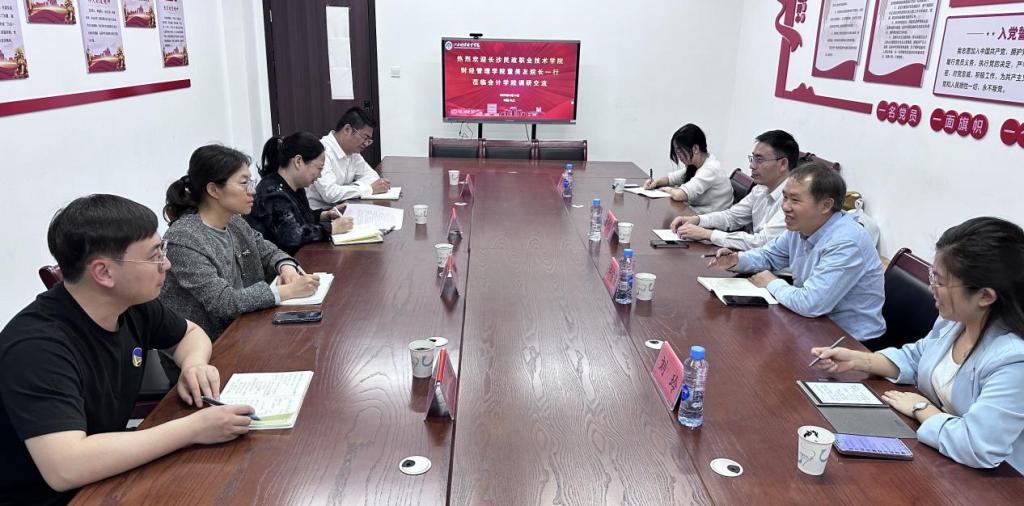 4月14日,長沙民政職業(yè)技術(shù)學(xué)院財(cái)經(jīng)管理學(xué)院院長董美友一行到會(huì)計(jì)學(xué)院開展調(diào)研交流,雙方圍繞“企業(yè)數(shù)智化轉(zhuǎn)型服務(wù)中心建設(shè)”“現(xiàn)場工程師學(xué)院建設(shè)”及“財(cái)經(jīng)商貿(mào)類專業(yè)產(chǎn)教融合高質(zhì)量發(fā)展路徑”展開深入探討。會(huì)計(jì)學(xué)院院長萬凱、副院長譚玉林、齊潔及黨政辦公室主任曾越在洙泗學(xué)館B308會(huì)議室接待。