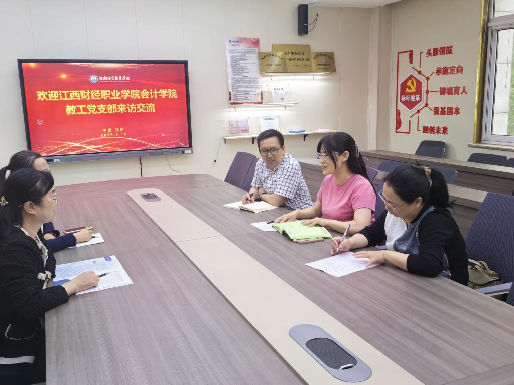 為深入學習貫徹黨的二十大精神,進一步提升基層黨建工作質(zhì)量,4月18日,會計學院教工黨支部書記萬凱赴“全國黨建工作樣板支部”——河南經(jīng)貿(mào)職業(yè)學院會計學院教工黨支部開展對標學習交流活動。旨在借鑒全國標桿支部的先進經(jīng)驗,推動會計學院黨建工作與專業(yè)建設深度融合,為培育新時代“紅燭數(shù)智財會先鋒”黨建品牌注入新動能。
