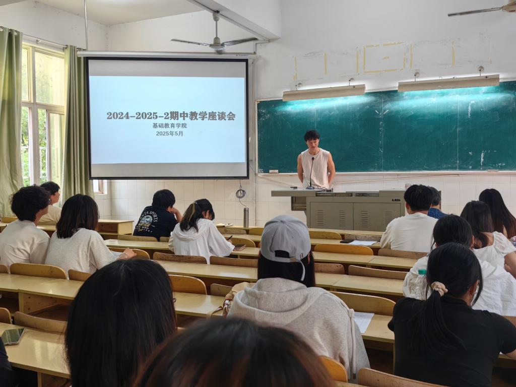 為深入了解學(xué)院教師教學(xué)情況以及學(xué)生學(xué)習(xí)狀況,提升教學(xué)質(zhì)量,加強師生交流,5月7日,基礎(chǔ)教育學(xué)院在潯陽校區(qū)和八里湖校區(qū)同時召開了本學(xué)期期中教學(xué)座談會。學(xué)院領(lǐng)導(dǎo)、各教研室教師代表以及學(xué)生代表齊聚一堂,圍繞學(xué)習(xí)與生活的多個方面展開熱烈討論。