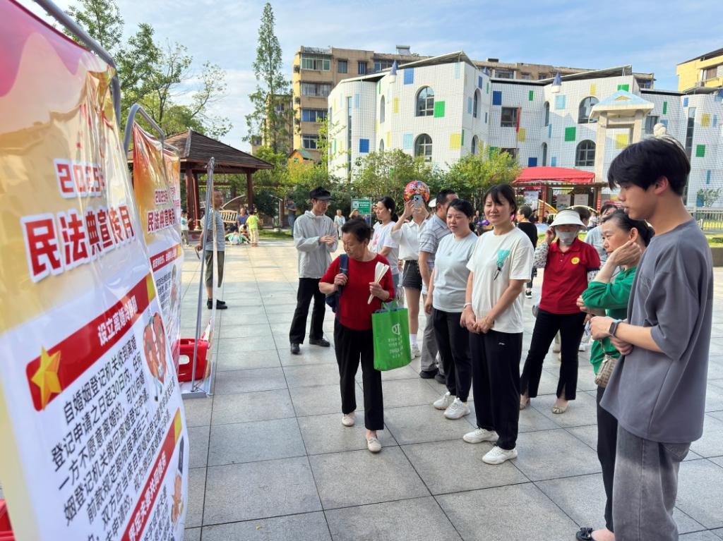活動以校團委街舞協會的活力表演開場,迅速暖場。隨后,學生們手持宣傳手冊走訪社區,向居民介紹活動內容,對居民進行普法講解。他們用通俗語言傳遞老百姓關心的法律知識,既吸引居民參與活動,又提升了自身實踐能力。