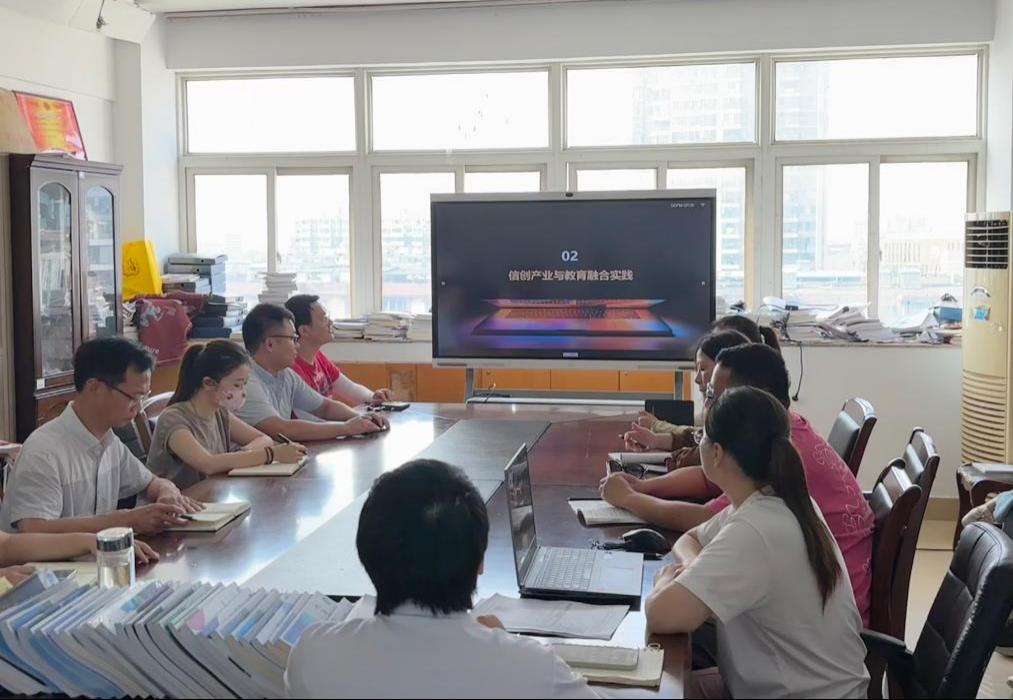 為深化產(chǎn)教融合,探索數(shù)智化教學(xué)創(chuàng)新路徑,5月21日下午,信息工程學(xué)院在潯陽(yáng)校區(qū)綜合樓813會(huì)議室成功舉辦“數(shù)智賦能,融合創(chuàng)新”專題教研活動(dòng)。活動(dòng)聚焦信創(chuàng)產(chǎn)業(yè)與教育融合實(shí)踐、人工智能技術(shù)賦能教學(xué)改革兩大主題,旨在推動(dòng)教育教學(xué)與前沿技術(shù)的深度融合。學(xué)院全體教師積極參與,共同探討數(shù)智時(shí)代背景下職業(yè)教育的發(fā)展方向,為培養(yǎng)高素質(zhì)技術(shù)技能人才建言獻(xiàn)策。