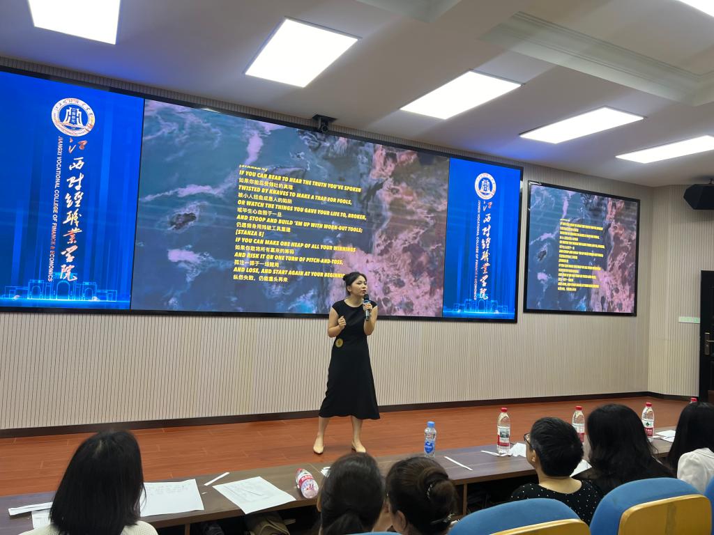 2025年6月6日,江西財經職業學院潯陽校區七樓學術報告廳內氣氛熱烈,我校第九屆“英語點亮人生”系列活動之英語美文朗誦大賽決賽在此成功舉辦。本次活動旨在激發學生學習英語的熱情,提升英語應用能力,并通過語言的魅力展示青春風采與人生夢想,為師生們奉獻精彩紛呈的語言文化盛宴。國際教育學院全體師生及全校英語愛好者300余人現場觀賽,7位專業教師擔任比賽評委。