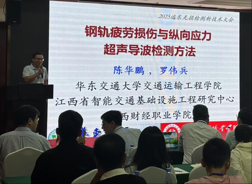 2025年6月23日—26日,2025年遠東無損檢測新技術大會在湖北省武漢市新城湖北文旅洪賓紅蓮湖酒店舉行,本次會議匯聚了全球無損檢測領域的頂尖專家、學者及行業精英,共同探討該領域的最新研究成果、技術發展趨勢以及面臨的挑戰與機遇,是無損檢測領域極具權威性與影響力的國際學術盛會。大會主題為:“人工智能賦能無損檢測(NDT.ai)”。中國工程院院士涂善東教授擔任本屆大會主席,英國皇家工程院院士基里爾·霍羅申科夫教授(Prof. Kirill Horoshenkov)擔任大會學術委員會主席并作主旨報告。城鄉建設學院羅偉兵博士受邀出席此次會議,并作了題為“鋼軌疲勞損傷與縱向應力超聲導波檢測方法”的學術報告。