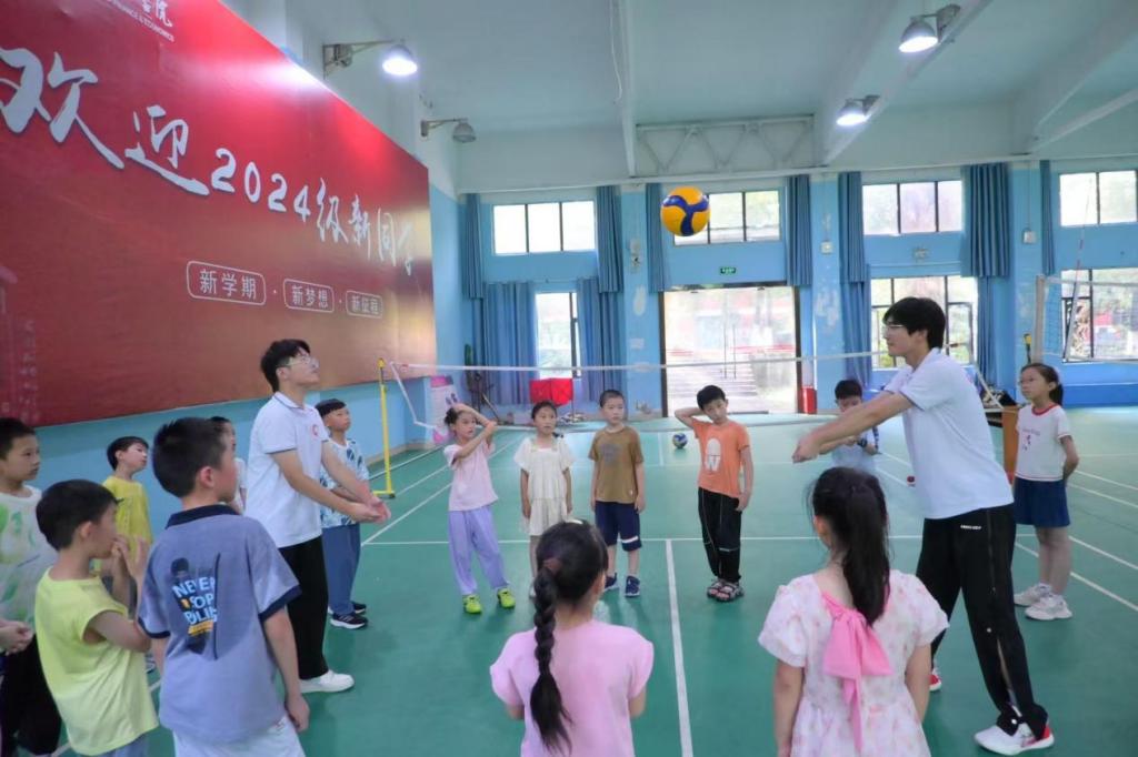 球場被夏陽曬得滾燙,實踐隊隊員手中的排球卻比陽光更熾熱。“球不落地,就不放棄”的話語剛落,孩子們便追著彈跳的排球奔跑起來。笨拙的墊球動作里,有汗水滴落的晶瑩,有隊友間相視一笑的默契,有接不住球時的懊惱,更有重新站起的倔強。此起彼伏的加油聲,是團隊精神在生長。當最后一顆球穩穩落進隊友懷中,孩子們揚起的笑臉比夏日晴空更明媚——他們或許尚未精通排球技法,卻已讀懂了“團結”二字的分量,懂得了每一次起跳都值得全力以赴。