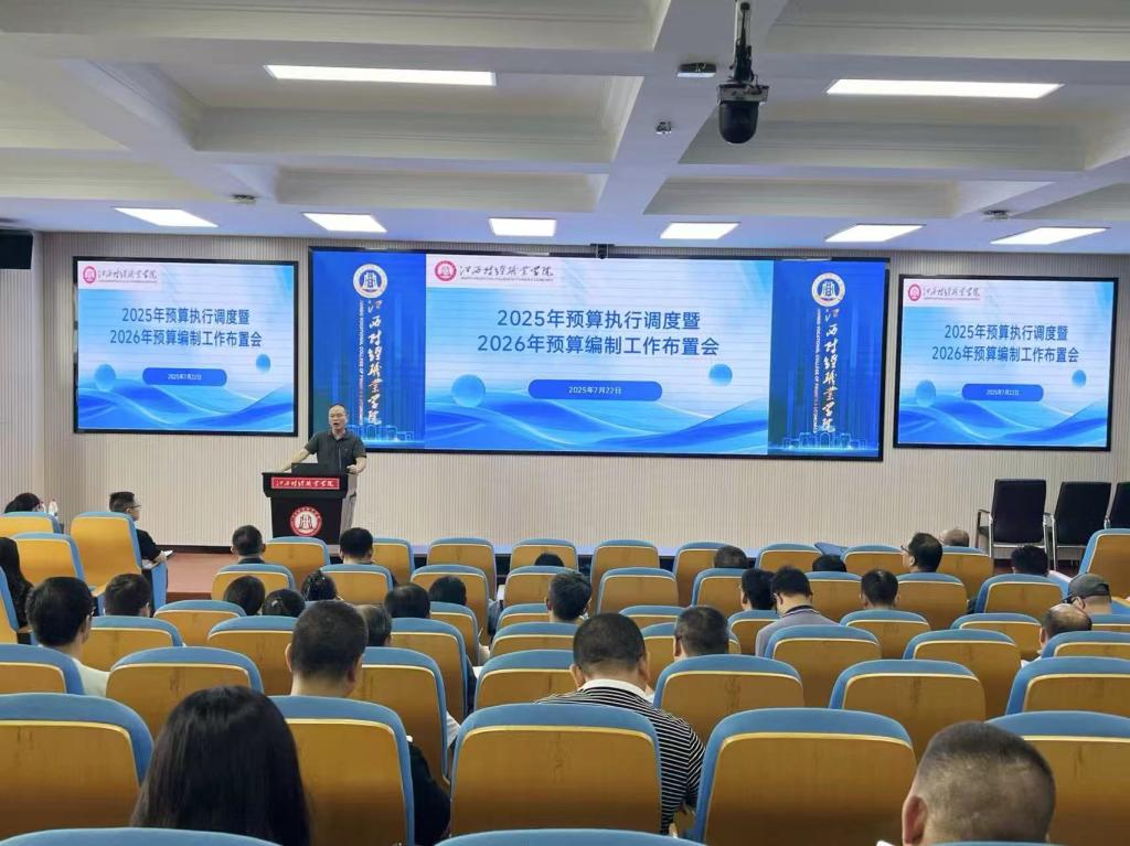 7月22日上午,我校在潯陽校區綜合樓7樓報告廳召開2026年預算編制工作布置會,校黨委委員、副校長馮弋江出席會議并講話,各部門主要負責人及相關經辦人員參加會議。