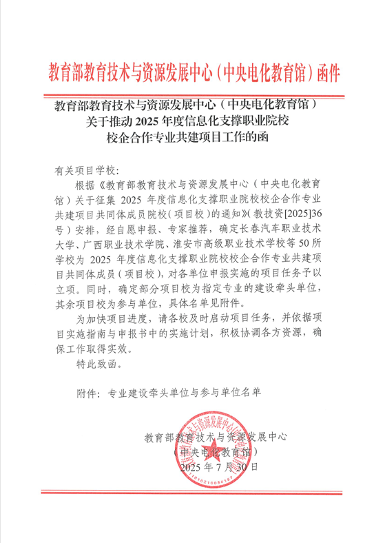 2025年7月30日,教育部教育技術(shù)與資源發(fā)展中心公布2025年度信息化支撐職業(yè)院校校企合作專業(yè)共建項目名單,工商管理學院“物流類‘三微’教改實踐專項”成功入選。