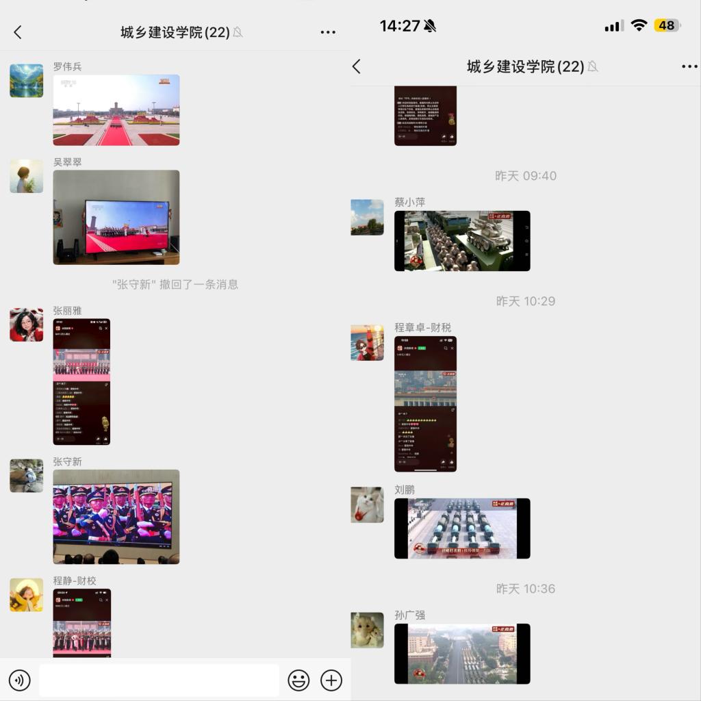 9月3日,為紀念中國人民抗日戰爭暨世界反法西斯戰爭勝利,城鄉建設學院組織學院師生通過多種方式集中收看閱兵儀式,共同回顧歷史,緬懷先烈,汲取奮進力量。