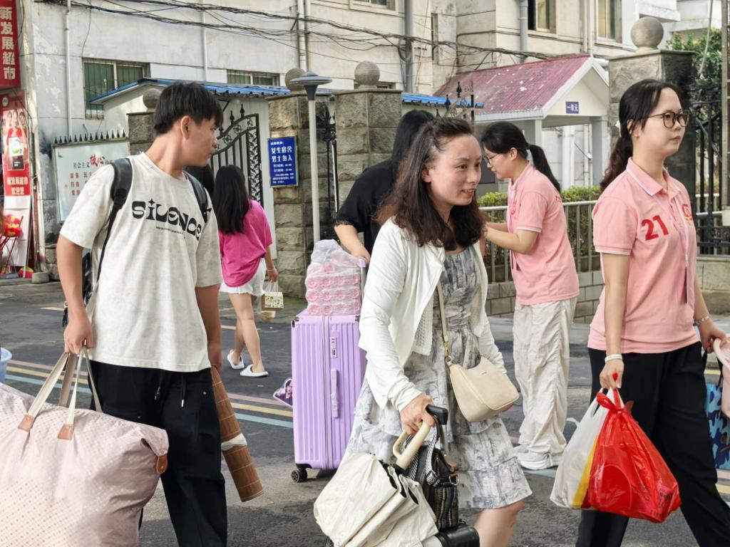 會計學院黨總支注重細節(jié)與服務(wù)實效,不僅設(shè)立了固定的迎新服務(wù)站,還安排了流動志愿者進行巡視。從校門口到報到點,隨處可見志愿者們忙碌的身影。他們身著統(tǒng)一服裝,熱情主動地迎上前,為新生提供“引導(dǎo)路線—掃碼報到—核驗身份—宿舍安排”等一站式的服務(wù),確保報到流程的順暢無阻,高效完成新生入學報到工作。