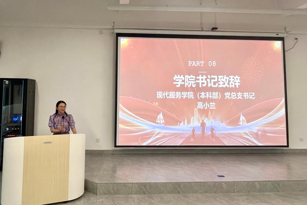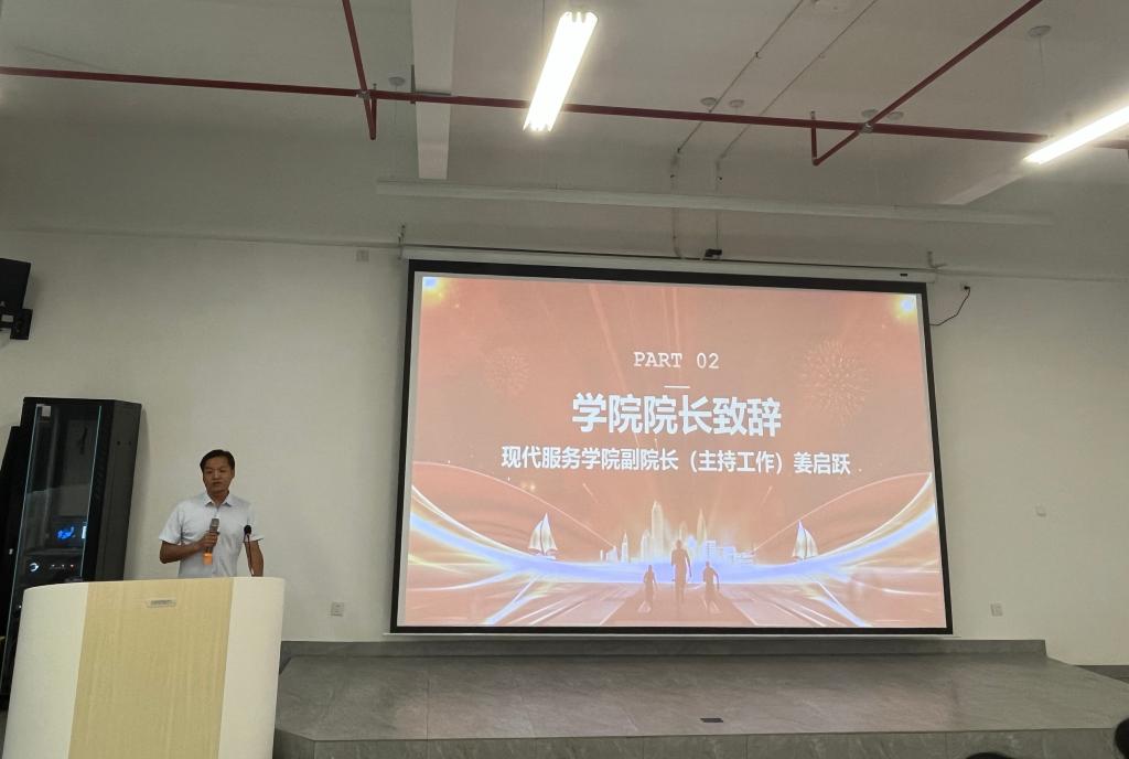 大會在莊嚴的國歌聲中拉開帷幕。首先,現代服務學院副院長(主持工作)負責人代表學院致歡迎辭。他滿含熱忱,向全體2025級新生表示最熱烈的歡迎。隨后,他詳細介紹了學院的發展歷程與學科優勢,并以師長的身份深情寄語新生,希望同學們能盡快完成角色轉換,珍惜大學時光,夯實專業基礎,錘煉過硬本領。