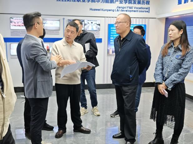 2025年11月7日,九江市委黨校一級(jí)主任科員蔣克義、九江市委黨校公共管理教研室教師黃悅率45位九江市委黨校第5期鄉(xiāng)科級(jí)進(jìn)修二班學(xué)員到鯤鵬產(chǎn)業(yè)學(xué)院進(jìn)行實(shí)地調(diào)研,詳細(xì)了解由九江市鄱陽(yáng)湖生態(tài)科技城與江西財(cái)經(jīng)職業(yè)學(xué)院、華為技術(shù)有限公司及華為江西授權(quán)培訓(xùn)中心三方共建的產(chǎn)業(yè)學(xué)院,如何通過(guò)校企合作、產(chǎn)教融合為區(qū)域經(jīng)濟(jì)發(fā)展注入強(qiáng)勁動(dòng)能。