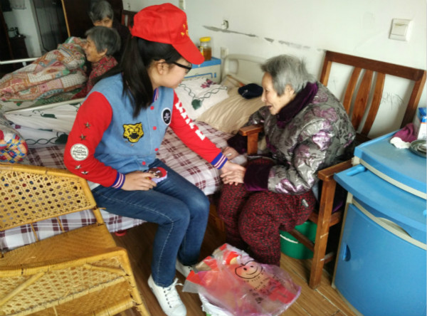 活動期間,志愿者們與老人談心,幫助他們整理內務、打掃衛生,為老人們揉肩、捶腿、扶老人出來曬太陽。