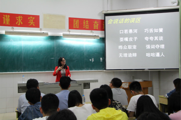 呂揚副教授的講座分為說話的前提、會說話的魅力、學生干部怎樣說話、學生干部的演講藝術、學生干部日常生活說話藝術等五個方面。