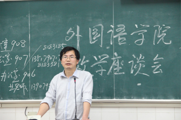 為全面了解外國語學院的專業教學情況,征求學生對外國語學院工作意見和建議,進一步提高外國語學院管理服務水平和人才培養質量,外國語學院于4月20日晚7點,在教學樓701召開了本院專業教學期中座談會。外國語學院院長王勝華、黨總支書記何平滾、商務英語專業教研室主任李輝、大學英語第二教研室主任程穎及外國語學院全體學生代表參加了本次座談會。大會由辦公室主任歐陽倍祥老師主持。