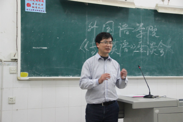 為了認(rèn)真做好期中教學(xué)檢查工作,為了全面了解我校英語課程的教學(xué)情況,征求學(xué)生對(duì)英語教學(xué)的要求和建議,進(jìn)一步提高外語教育教學(xué)質(zhì)量,外國(guó)語學(xué)院于2016年5月10日晚7點(diǎn),在教學(xué)樓617、708教室分別召開了全校大學(xué)英語和專業(yè)英語教學(xué)期中座談會(huì)。外國(guó)語學(xué)院院長(zhǎng)王勝華教授、外國(guó)語學(xué)院辦公室主任歐陽倍祥老師、大學(xué)英語第一教研室主任曹云波老師、大學(xué)英語第二教研室主任程穎老師、專門用途英語教研室主任白楊老師和300余名學(xué)生代表參加了本次座談會(huì)。
