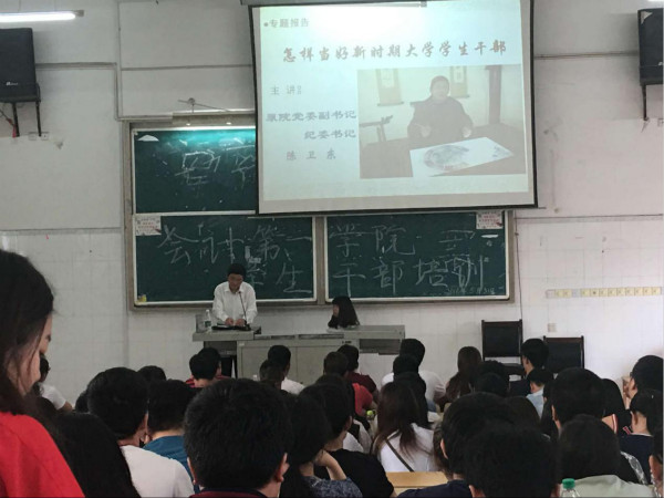 為深入推進會計第一學院“黨建加學生工作”,強化學生工作隊伍建設,進一步提升會計第一學院學生干部的綜合素質和工作能力,指導學生干部成長成才,5月31日下午4:30,特邀我校關工委副主任、原學校紀委書記、黨委副書記陳衛東同志在我校教學樓617教室為本院學生干部培訓班學員作了一場題為《怎樣當好新時期大學學生干部》的專題教育講座。本次講座由會計第一學院黨總支副書記張家順主持,院團總支書記張慶老師及200余名院學生干部共同聆聽了此次講座。