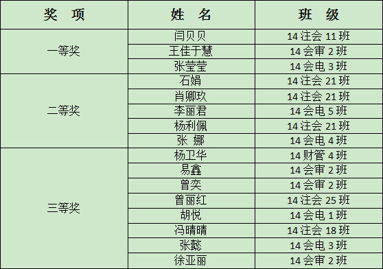 附:會計競賽獲獎名單