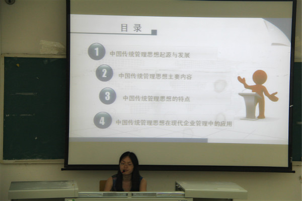 講座為“贏在商戰”第一季系列活動的重要內容之一,由工商管理學院王金梅副教授主講。王老師從中國傳統管理思想的起源與發展談起,介紹了中國傳統管理思想的主要內容及其特點,重點闡述了中國傳統管理思想在現代企業管理中的應用。王老師的講座,由淺入深,理論聯系實際,案例豐富,講解生動活潑,使在場師生深刻體會到了中國文化及傳統管理思想的博大精深。