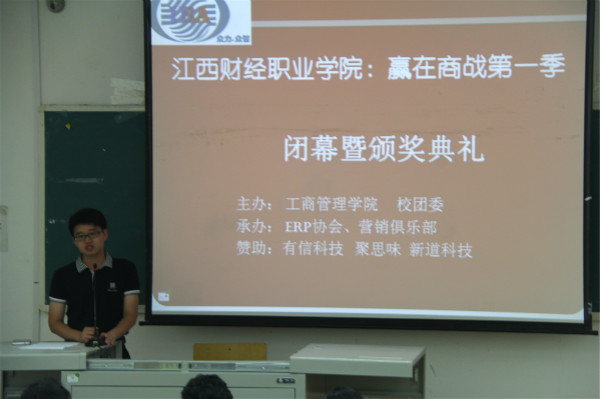 6月15日下午,工商管理學院在綜合樓階梯教室二舉辦了以《中國傳統管理思想與現代企業管理》為主題的講座,并于講座后隆重舉行了“贏在商戰”第一季閉幕式暨表彰大會。出席大會的領導和嘉賓有我校教務處處長程文忠教授、九江友信科技公司王超經理、江西用友新道公司盧燕青經理、九江聚思味公司郭凌云主管、校團委青工書記葉睿老師、工商管理學院黨政班子等。