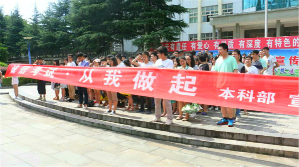 孟子有云:“車無轅而不行,人無信則不立”。為進一步樹立良好學(xué)風(fēng),嚴肅考風(fēng)考紀,營造嚴謹求實的學(xué)習(xí)氛圍,培養(yǎng)學(xué)生的誠信品德,維護公平公正的考試秩序。期末考試來臨之際,本科部學(xué)生黨支部本著“兩學(xué)一做”基礎(chǔ)在學(xué)、關(guān)鍵在做,每個黨員必須學(xué)在經(jīng)常,做在日常的態(tài)度,6月21日上午開展了系列活動三之“誠信考試·從我做起”簽名宣誓活動。