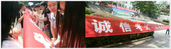 本次活動分以下三個環(huán)節(jié)進行:首先,由學(xué)生黨員代表向全體同學(xué)宣讀《全日制普通本科學(xué)生考試違紀處理規(guī)定》;接著,學(xué)生黨員帶領(lǐng)全體同學(xué)進行誠信考試莊嚴宣誓,最后,全體同學(xué)在“誠信考試·從我做起”橫幅上簽名。一個個簽名代表一個個誠信承諾,代表莘莘學(xué)子誠信為本,維護尊嚴,塑造形象,守住內(nèi)心的堅持,交出滿意答卷的信心。