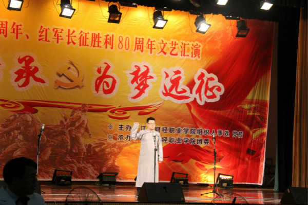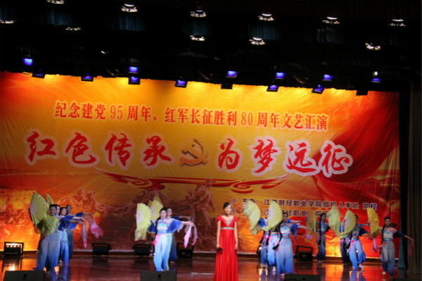 為迎接黨的生日,慶祝偉大的中國共產(chǎn)黨走過95周年崢嶸歲月,我院精心組織了配樂詩朗誦《破曉的曙光》、歌伴舞節(jié)目《沂蒙頌》參加學(xué)校舉辦的“慶祝建黨95周年、紅軍長征勝利80周年”文藝匯演。6月28日,期待已久的文藝匯演如期而至。沉穩(wěn)堅(jiān)毅的配樂詩朗誦《破曉的曙光》歌頌了偉大的中國共產(chǎn)黨的誕生給中華大地帶來了曙光,這輪曙光點(diǎn)亮了中國革命的前程。歌伴舞《沂蒙頌》中優(yōu)美的歌聲及曼妙的舞蹈完美地詮釋了軍民如水一家親的深情厚誼。最終,經(jīng)過評(píng)選,歌伴舞《沂蒙頌》獲得了二等獎(jiǎng)的好成績。
