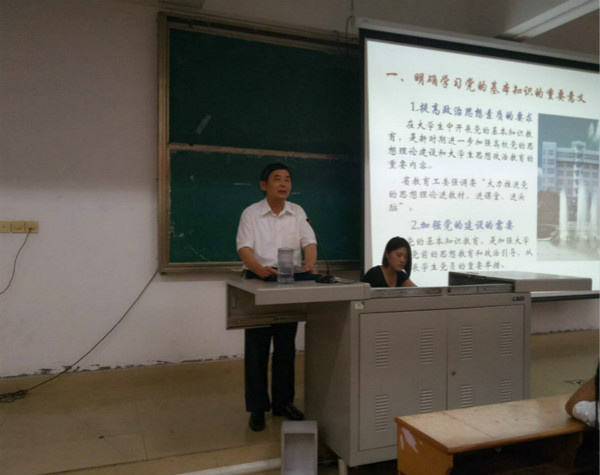 陳衛東同志從開展黨的基本知識教育的重要意義談起,接著具體闡述了黨的性質、宗旨、指導思想、基本路線、紀律以及黨的最終目標與現階段的任務等基本知識,最后從三個方面要求同學們將黨的基本知識貫徹于大學學習生活中,落實于實際行動中,爭當模范,爭做表率。