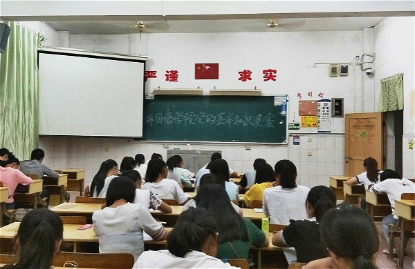 為認真貫徹落實省委教育工委《關于在2016年高校新生中開展黨的基本知識教育的通知》(贛教黨字〔2016〕62號)文件精神,扎實推進“兩學一做”學習教育,增進新生對黨的基本知識的了解,激發新生入黨的積極性,9月28日晚,外國語學院組織2016級全體新生在教學樓506、507開展黨的基本知識競賽。