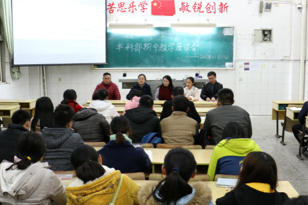 為更好了解本科生學習及思想動態,著力提升本科教學管理與服務水平,2016年11月23日19:00,本科部在教學樓215召開了2016-2017學年第一學期期中教學座談會。本科部全體老師與14、15、16級48名學生代表共同參加了此次活動。
