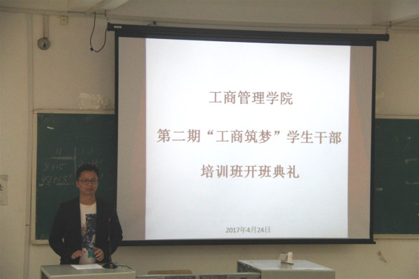 學無止境,厚積薄發。為進一步提升團學干部綜合素質,增強團學干部隊伍的凝聚力和戰斗力,工商管理學院于4月26日在綜合樓階梯教室二舉辦了第二期“工商筑夢”學生干部培訓班開班典禮暨學生干部培訓講座。校團委書記李智、工商管理學院黨總支書記胡紅霞教授及工商管理學院教師楊麗梅、金晶出席了開班典禮,工商管理學院團總支學生會全體學生干部及16級各班主要班干部參加了此次培訓。開班典禮由院黨政辦主任、團總支書記廖國臣主持。
